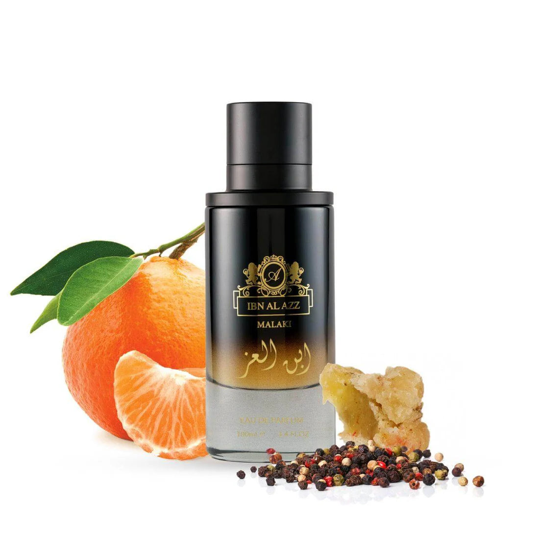 Ibn Al Azz Malak Eau de Parfum opens with Elemi Philippines, Mandarin Oil, and Black Pepper. Clary Sage, Lavender, and Geranium Egypt blend into a heart of Rose, while Sandalwood, Cedarwood, and Tonka Bean create a rich base, enhanced by Patchouli, Vetiver, Vanilla, and Musk.