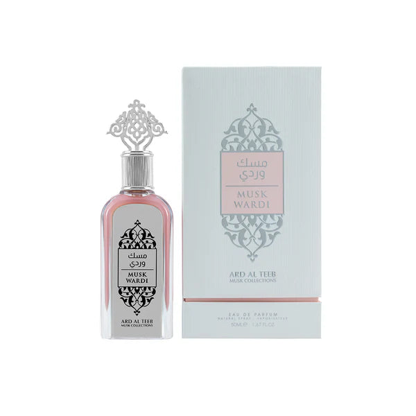 Musk Wardi Eau de Parfum is a delightful feminine fragrance that embodies femininity and natural beauty. It features a unique composition that delivers a delicious and captivating opening. At its heart lies a sweet blend of vanilla, rose, and musk, adding a touch of delicacy and allure. The base consists of amber, sandalwood, and patchouli, enhancing the depth of the fragrance and providing long-lasting wear.